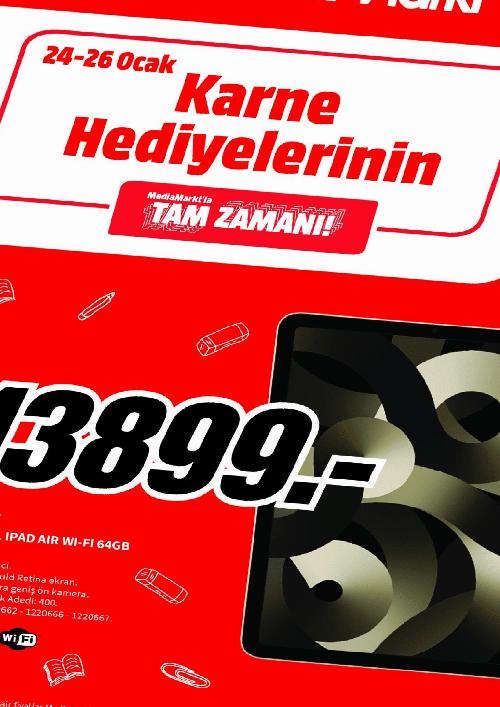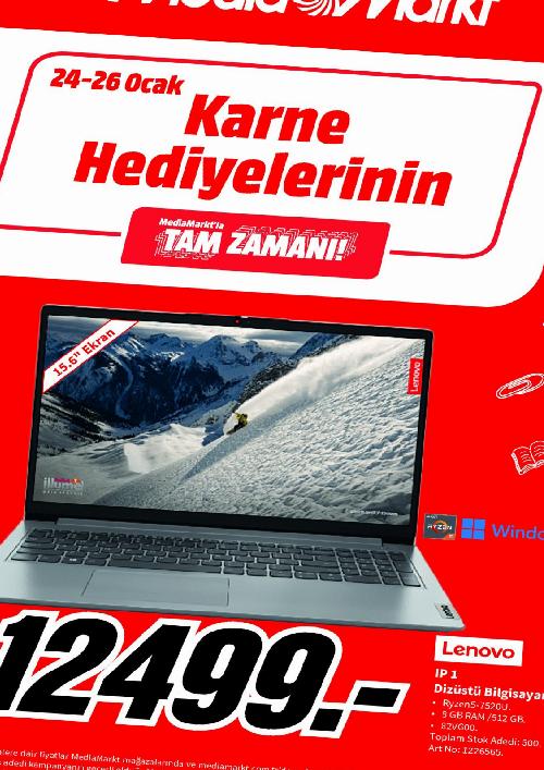 Türkiye’nin en geniş satış alanına sahip elektronik perakendecisi MediaMarkt’ta Yarıyıl Kampanyası devam ediyor. Kampanya kapsamında 24-26 Ocak tarihleri arasında dizüstü bilgisayar, kablosuz kulaklık, tablet, yazıcı ve akıllı TV gibi birbirinden farklı ürünler çeşitli fırsatlarla satışa sunulacak.
