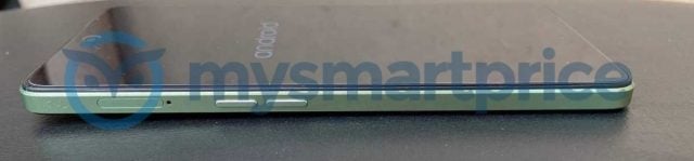 Bu fotoğraflarda telefonun arka kısmında parlak krom benzeri bir kaplama ve sağ kısımda güç düğmesinin olduğu mat yeşil bir çerçeve bulunduğunu görüyoruz.