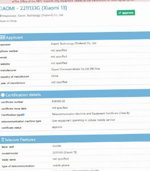 Xiaomi 13 Pro, hem BIS’te hem de NBTC veritabanında “2210132G” model numarasıyla göründü. Xiaomi 13 ise “2211133G” model numarasıyla veritabanlarında görüldü.