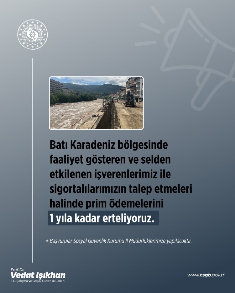 Batı Karadeniz'deki sel felaketinden etkilenenlerin prim ödemeleri 1 yıl ertelendi.