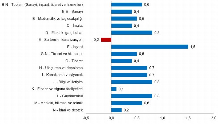Ücretli çalışanların sektörlere göre aylık değişim oranlarında Kasım ayı yüzde olarak şöyle: