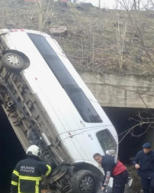 Sedat CEYLAN / BİLECİK (İGFA) - Alınan bilgiye göre Bilecik Şehirlerarası Otobüs Terminali'nden Vezirhan’a seyir halinde olan 34 LAM 907 plakalı minibüs Kuyubaşı mevkii tüneller bölgesinde dereye yatağına uçtu.