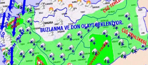 Akdeniz, Doğu Anadolu'nun güneyi, Güneydoğu Anadolu ile Balıkesir, Bursa, Afyonkarahisar, Denizli, Konya, Karaman çevreleri ile İstanbul'un kuzeybatısı ve Kırklareli'nin doğusunda kuvvetli yağış ve yer yer yoğun kar yağışı şeklinde olması beklenen yağışların başta buzlanma ve don olayına bağlı ulaşımda aksamalar ile kar yağışı olan yerlerde yer yer tipi şeklinde yağış gibi olumsuzluklara karşı dikkatli ve tedbirli olunması gerektiği bildirildi..