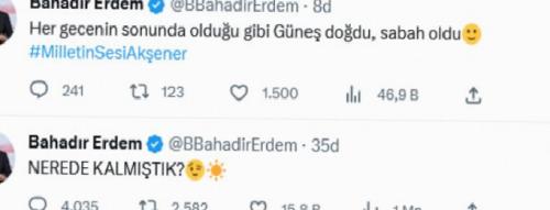 Erdem, "Nerede kalmıştık?" diyerek yaptığı paylaşımından sonra, "Her gecenin sonunda olduğu gibi Güneş doğdu, sabah oldu" ifadelerini kullandı.