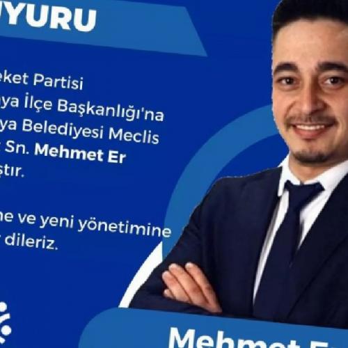 BURSA (İGFA) - Bursa’da Memleket Partisi’nin tek belediye meclis üyesi olan Mudanya Belediye Meclis Üyesi Mehmet Er, Mudanya İlçe Başkanlığı’na atandı.