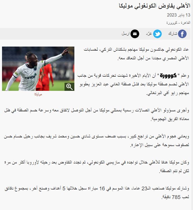 Arap basınında yer alan habere göre; Mısır kulübü Al-Ahly, Muleka'yı kadrosuna katmak için girişimlere başladı.